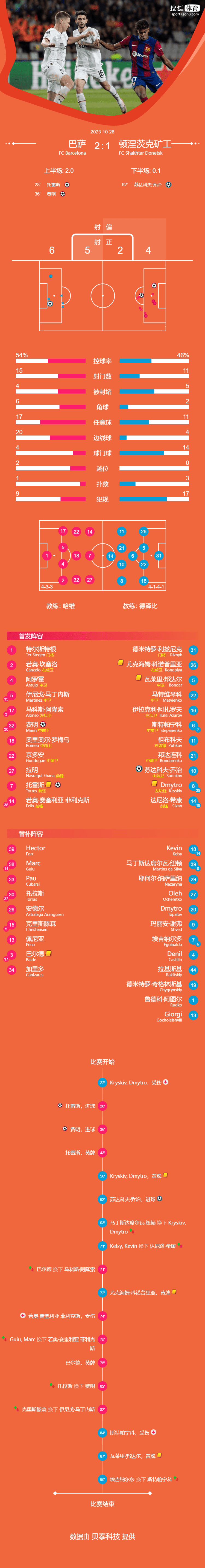 BBIN体育:北京时间10月26日,欧冠小组赛H组第三轮比赛拉开帷幕,巴塞罗那在主场迎战顿涅茨克矿工。在第28分钟,费兰-托雷斯在门前抢射得手,为巴萨打破僵局。第36分钟,费兰成功助攻小将费尔明,扩大了比分。然而,第62分钟,矿工的苏达科夫完成一记进球,将比分缩小。不幸的是,第74分钟,巴萨的菲利克斯受伤离场。最终,巴萨以2-1的比分战胜对手,赢得小组赛的第三场胜利,积累了9分,稳坐小组榜首。